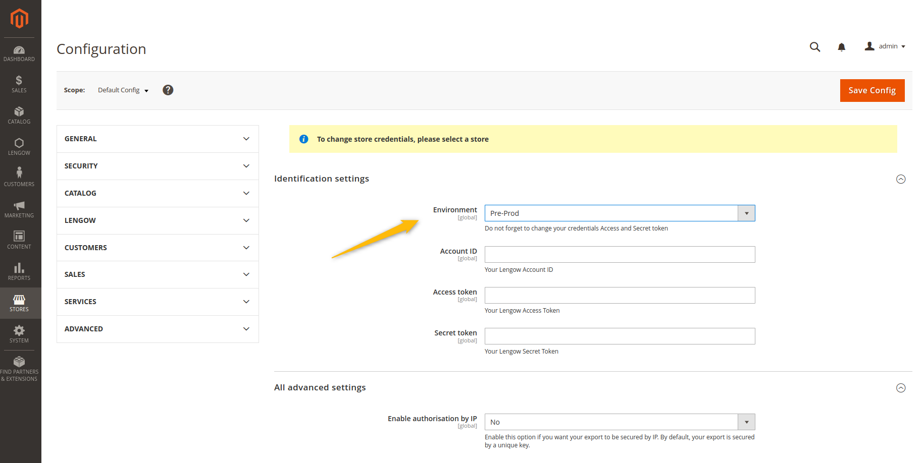 - Gehen Sie zu den "globalen Einstellungen" im Lengow-Tab.