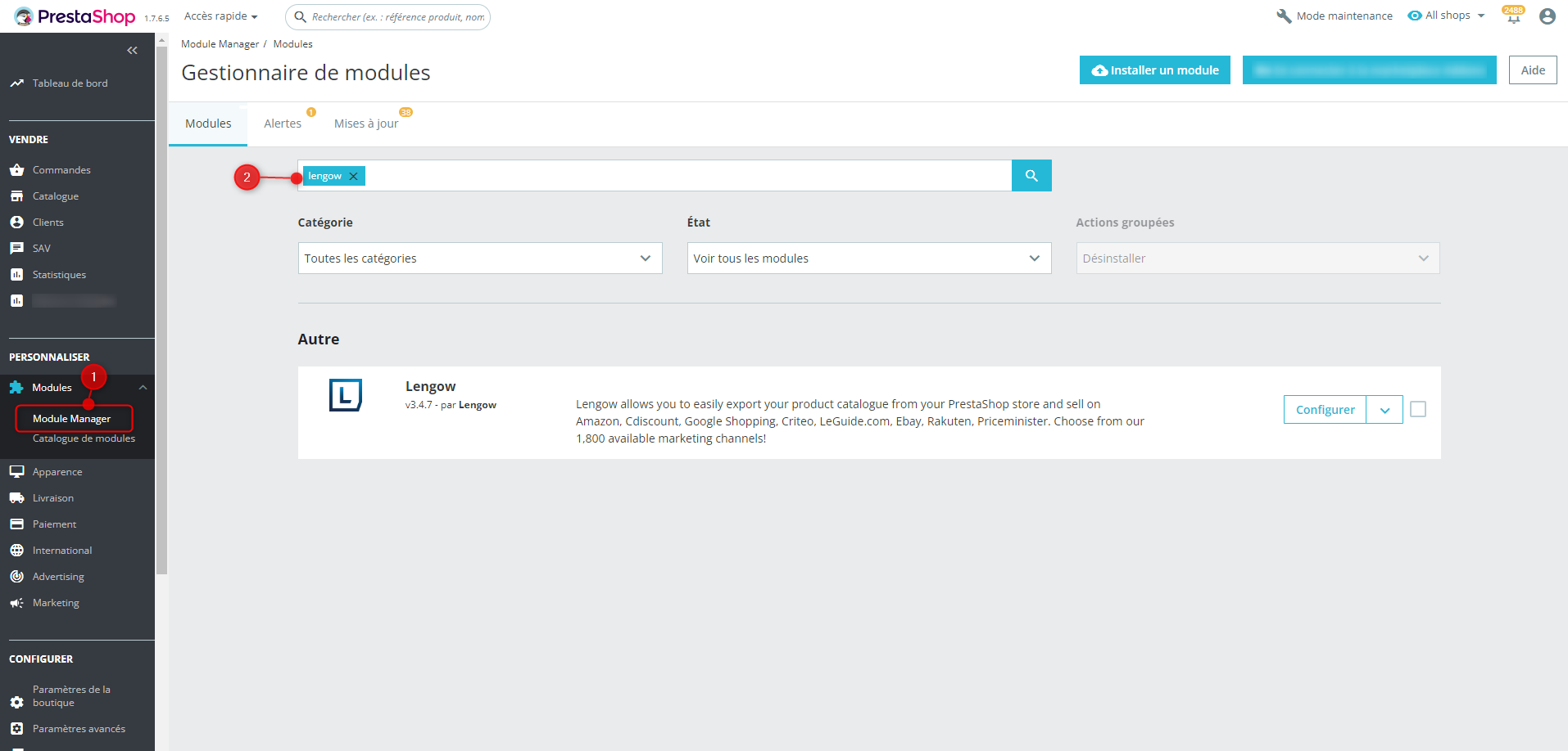 - Gehen Sie zum Modulmanager, um das "Lengow"-Plugin zu suchen.