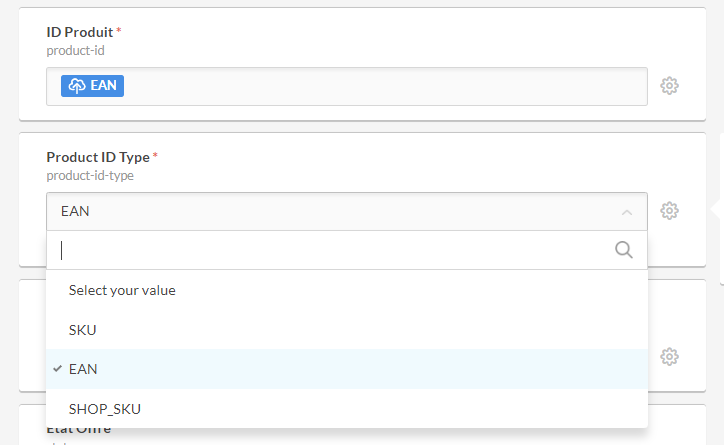 - Wählen Sie dann "EAN" im Feld "product-id-type" aus