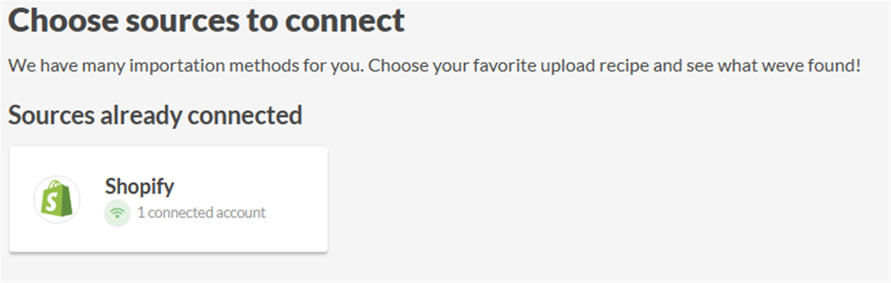 - Wählen Sie die bereits verbundene Shopify-Quelle aus.