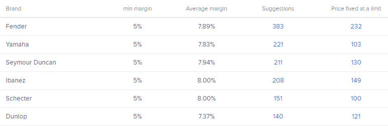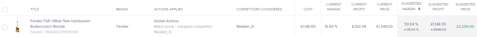 - Spalte in grün auf der rechten Seite zeigt die vorgeschlagene Marge nach Neuberechnung der Preise aus erstellten Aktionen