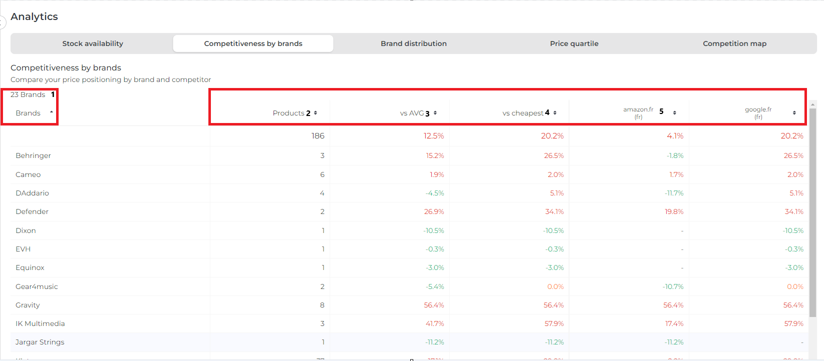 Dieses Modul ist zugänglich von Preisüberwachung > Analytik > Wettbewerbsfähigkeit nach Marken