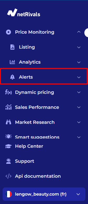 Das Warnungsmodul wird Ihnen helfen, Benachrichtigungen über Preis und Lageränderungen von der Konkurrenz von verbundenen Produkten zu erhalten und diese sowohl von der Saas als auch per E-Mail zu überwachen.