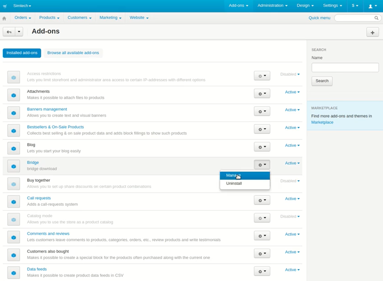 4. Sie sehen die Bridge in der Add-on-Liste.