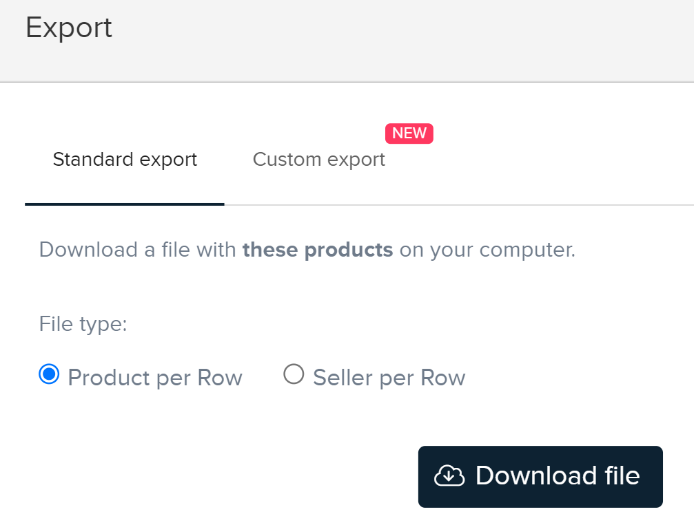 Indem Sie auf die Aktionsknöpfe auf der linken Seite klicken, können Sie filtern und Produkte aus Ihrem Katalog anzeigen, deren Preis/UVP ist: Günstiger, Gleicher Preis und Teurer als der Marktdurchschnitt.