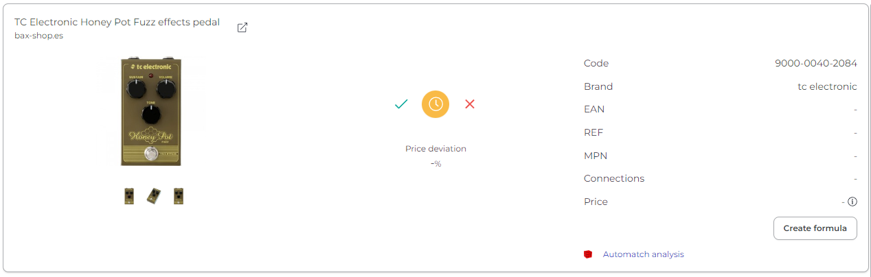 NetMonitor aktualisiert verbundene Produkte täglich, jedoch erfolgt der Prozess für den gesamten Katalog von Händlern/Wettbewerbern (nicht verbundene Produkte) wöchentlich, angesichts der Größe bestimmter Produktkataloge. Daher ergeben sich jedes Mal, wenn es eine Aktualisierung im Katalog der Verkäufer gibt, neue Möglichkeiten für neue Übereinstimmungen.