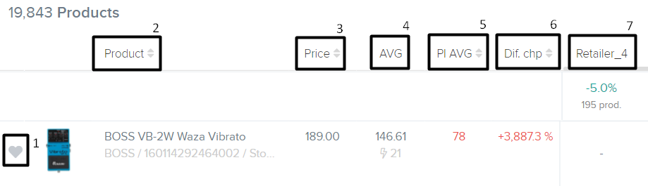 - AVG: Der durchschnittliche Produktpreis aller Konkurrenten'/Einzelhändlerpreise.