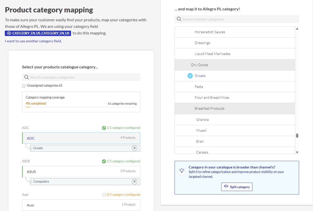 Applicable products: Netmarkets Allegro - Kategorien Kartiere deine eigenen Kategorien mit den Kategorien von Allegro im Kategorien-Mapping Schritt. Aktualisiert 13. November 2025 18:44