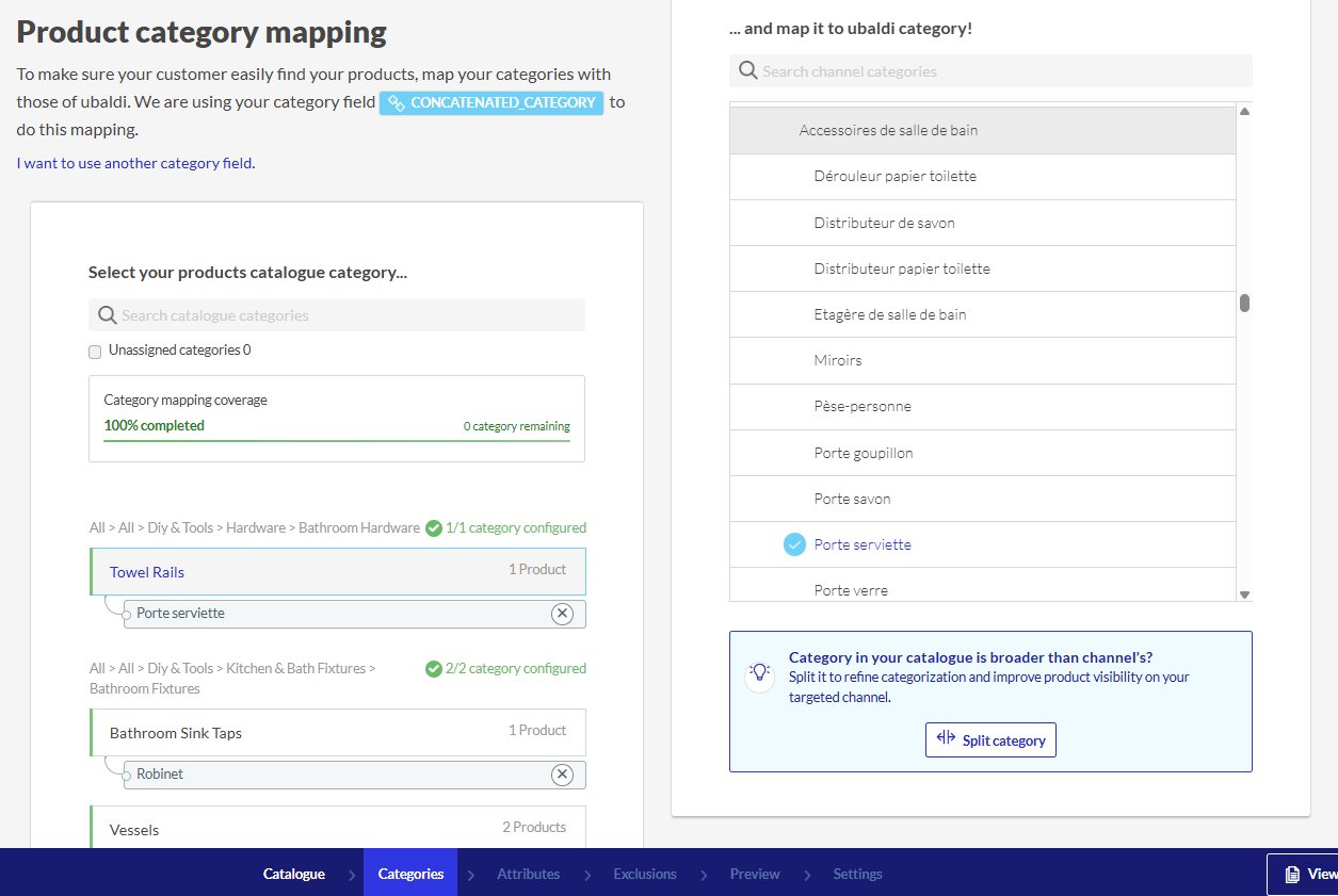 Applicable products: Netmarkets Ubaldi (Mirakl) - Kategorien Kartieren Sie Ihre eigenen Kategorien mit den Kategorien von Ubaldi im Kategorien-Mapping Schritt. Aktualisiert 11. Dezember 2025 18:49