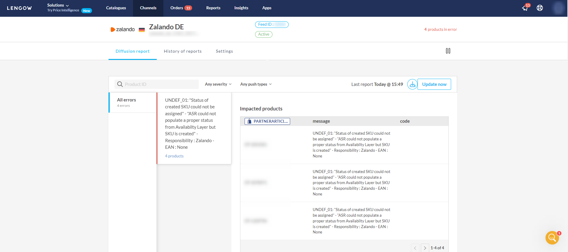 Das erste, was Sie überprüfen sollten, wenn Ihr Produkt auf Zalando nicht verfügbar ist, ist der Diffusionsbericht auf Lengow: