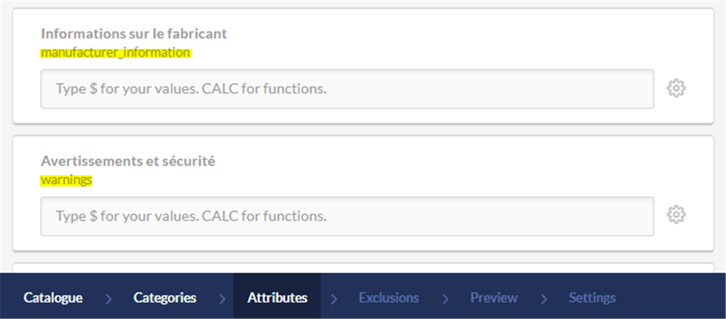 Note: The amount of eco-tax must include the amount of VAT so that it is displayed below the price on the product sheet. The existing attribute "eco_part" must not be used anymore.