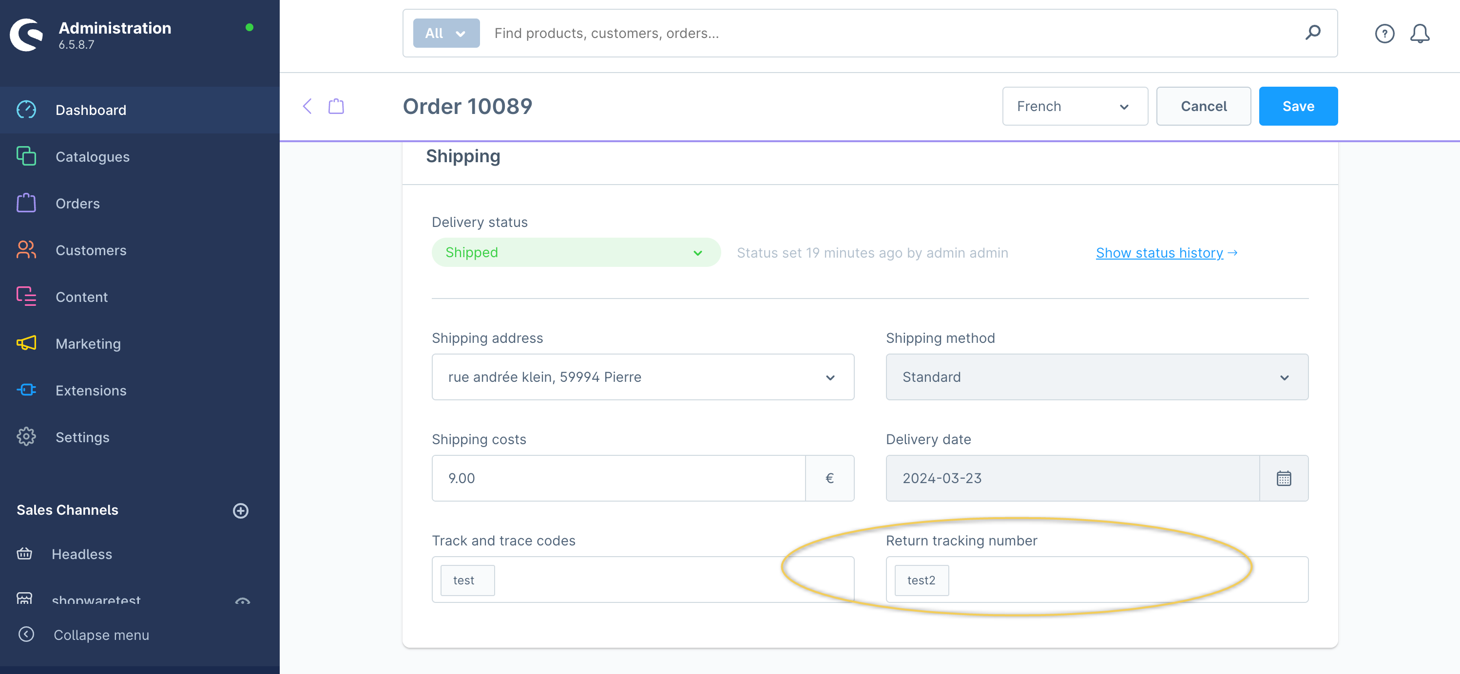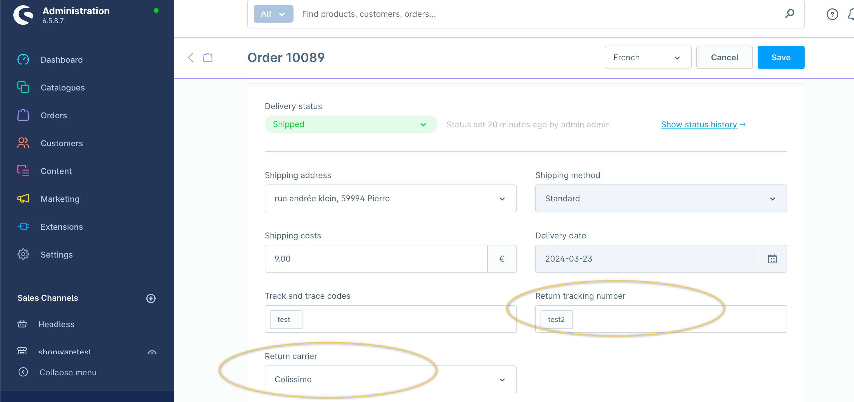Follow these instructions to add the return tracking information for your orders in Shopware 6.