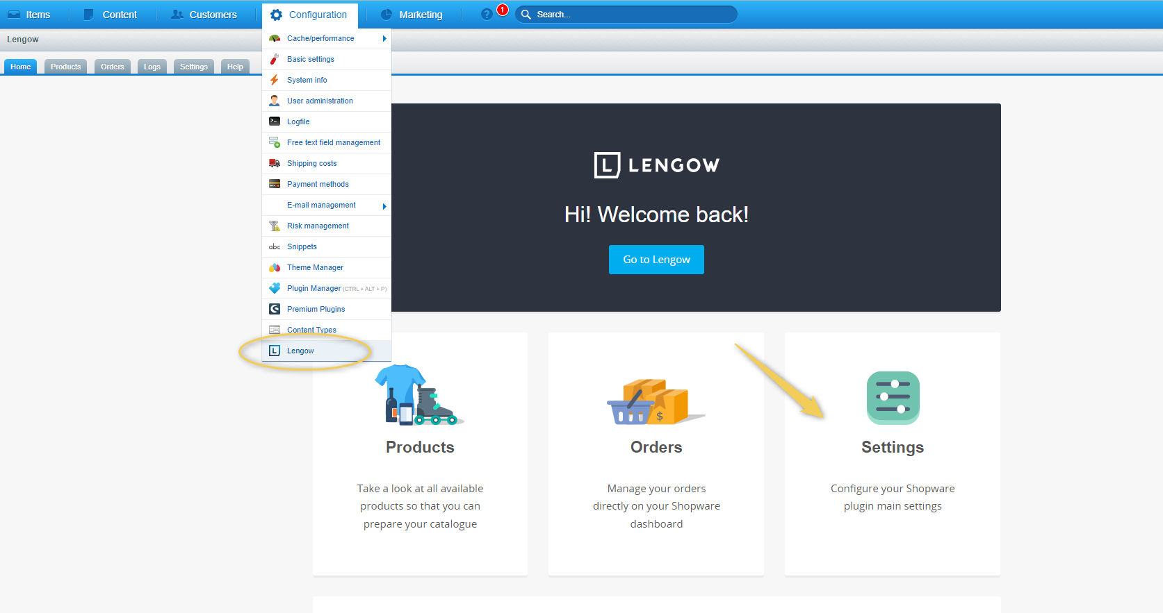 - A window appears. Go to additional settings > Lengow > Main settings.