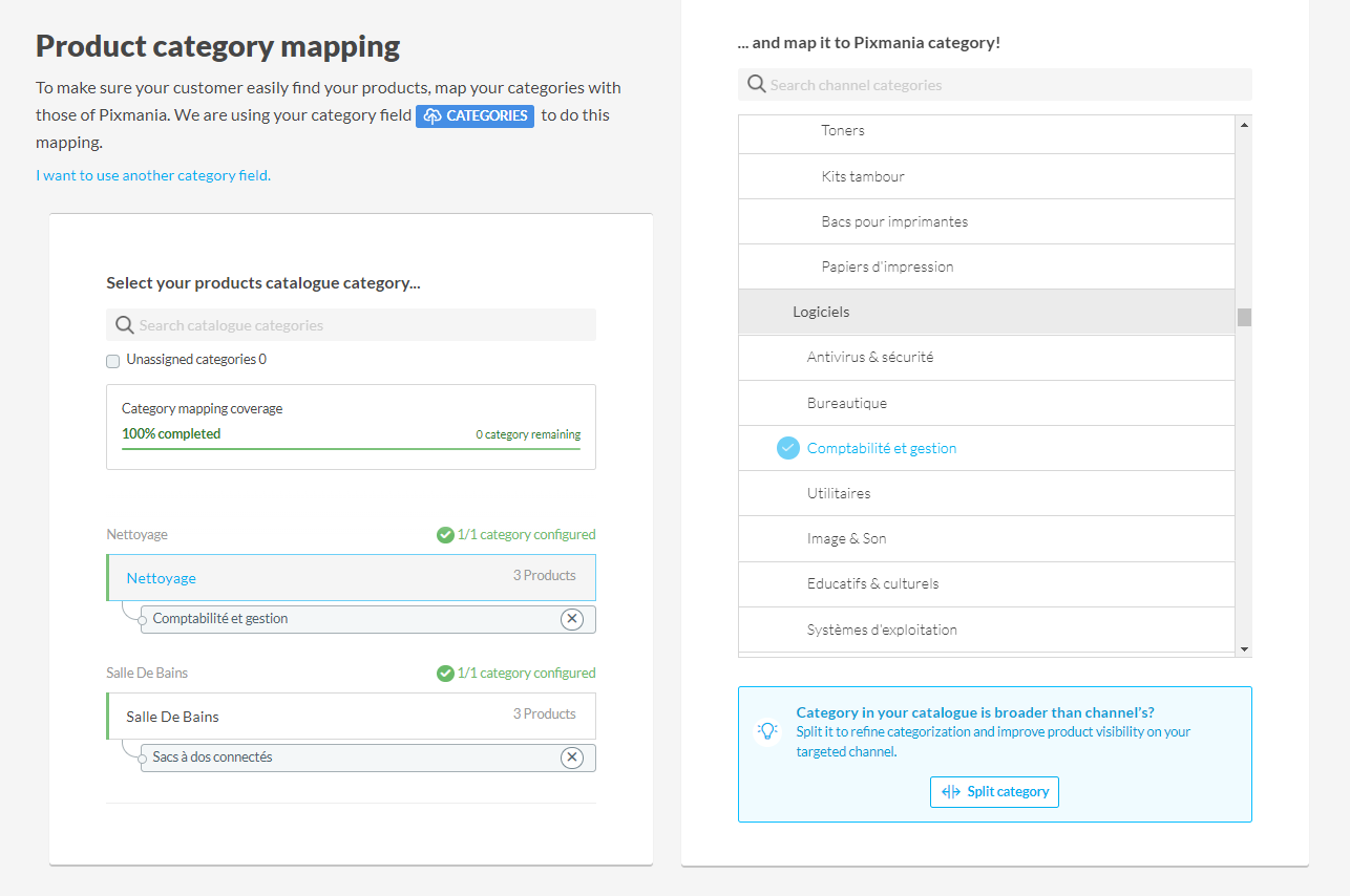 Applicable products: Netmarkets Pixmania (Mirakl) - Categories Map your own categories with Pixmania's categories at the Categories step. Updated October 08, 2024 09:42