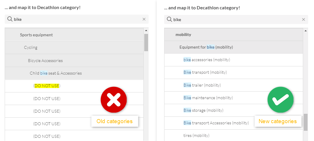 All merchants must migrate to this new taxonomy, as the old categories will be deleted by Decathlon from the 4th of November 2024.