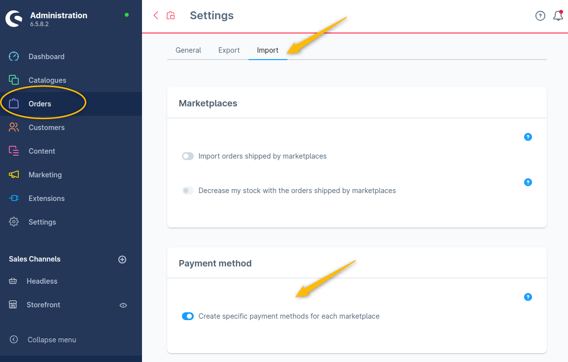 Here are the steps to set a specific payment method per marketplace in Shopware 6: