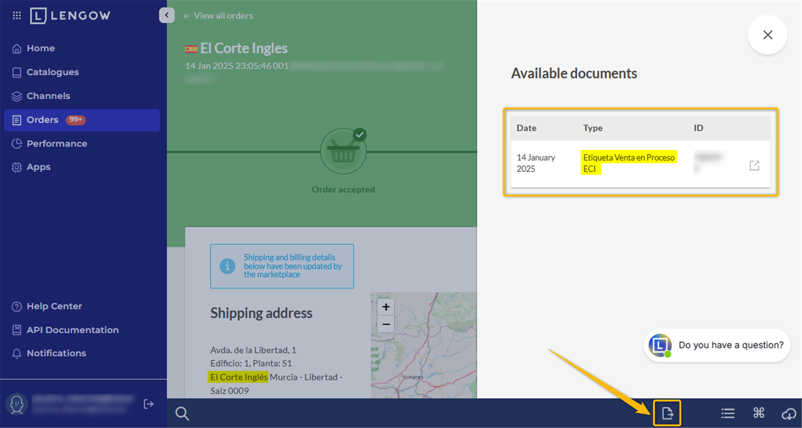 El Corte Inglés' orders are retrieved via the API connection of your Offer feed.