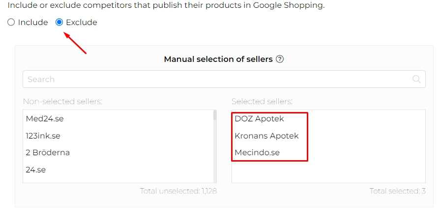 You can choose which sellers to take into account or not in your Dynamic Pricing strategy. You will be able to select specific sellers for each of the marketplaces you are monitoring in your Netrivals platform.