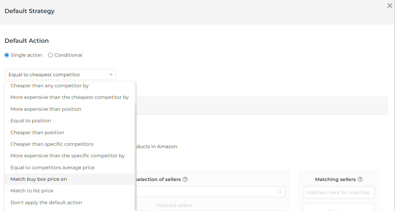 - Match the buy box price on: Match the buy box price on a specific marketplace.