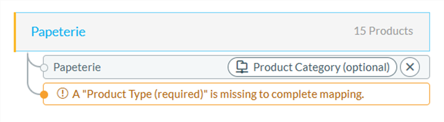 This error means that the category mapping is missing for a SKU, or a part of the mapping (Product type or Product category).