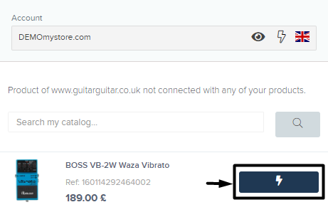 You can connect products you have not captured yet directly from the web of sellers you’re following. You only have to search the product you want to connect with in your retailer’s website, and link it to the product in your catalog using the Searching bar and clicking on the thunder button.