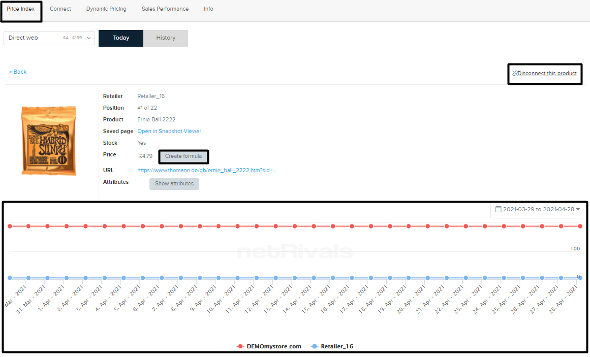 Graph: See price behaviour throughout time in comparison with a specific retailer.