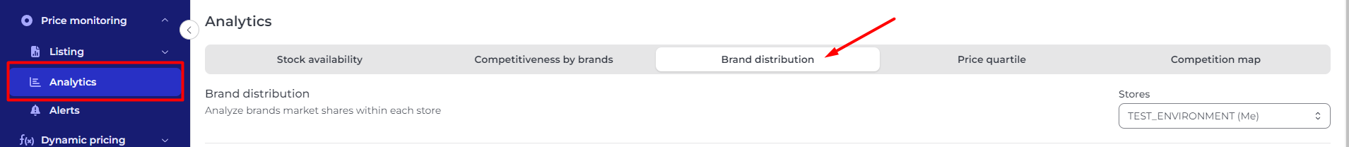 This module is accessible from Price monitoring > Analytics> Brand distribution