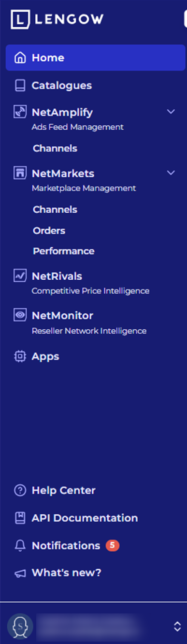 Amend information related to your Lengow profile and account or go to another account (only for multi-accounts).
