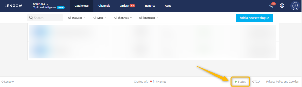 The Status page allows you to consult the history of service and maintenance interruptions of the platform.