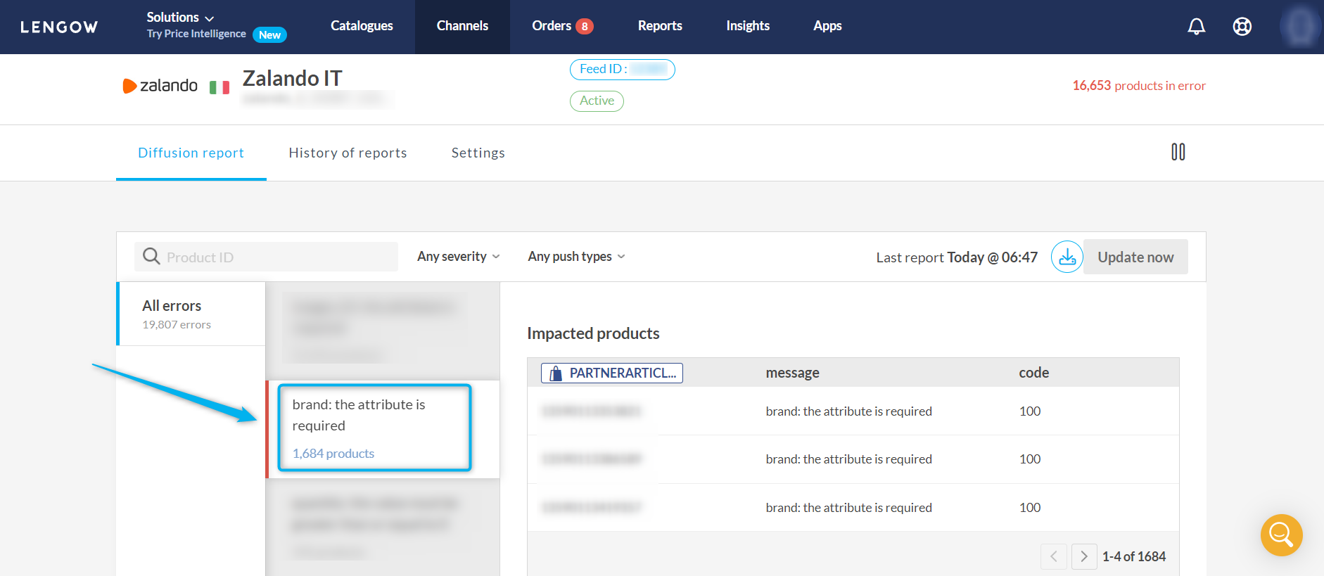If there are errors on the Channel report, the impacted products might not be published/updated.
