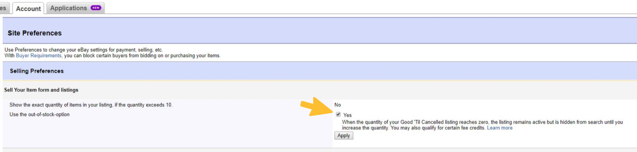 - In your eBay Account > Selling preferences, activate the option "Listings stay active when you're out of stock" (more information here):