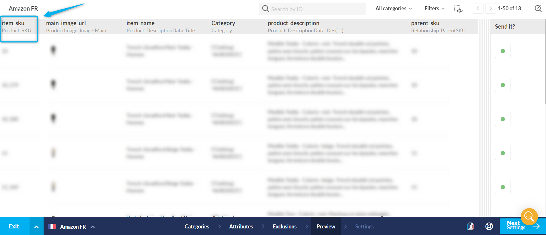 - If, on the other hand, there is no blue triangle, this means that you have excluded the product with a rule, either on the attributes list, or on the exclusions tab.