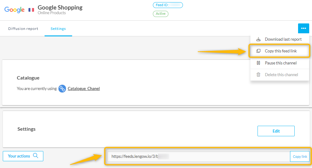 Get the URL of your feed in Lengow
