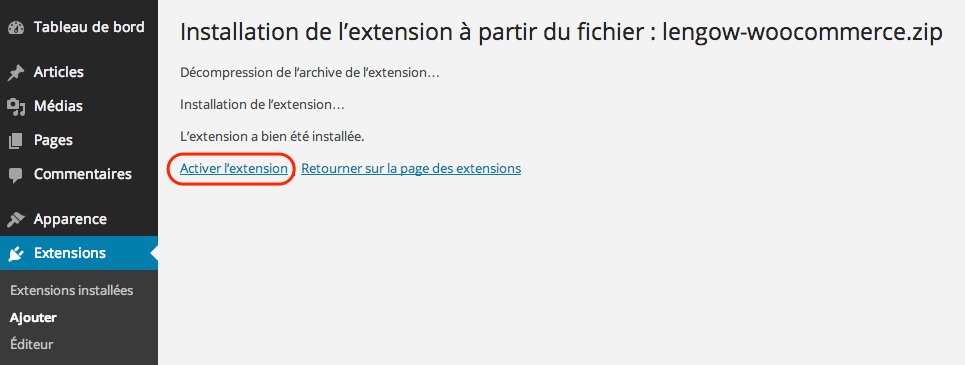- Vaya a la pestaña "Extensiones" > "Añadir" > "Mostrar una extensión en línea" > "Elegir un archivo".