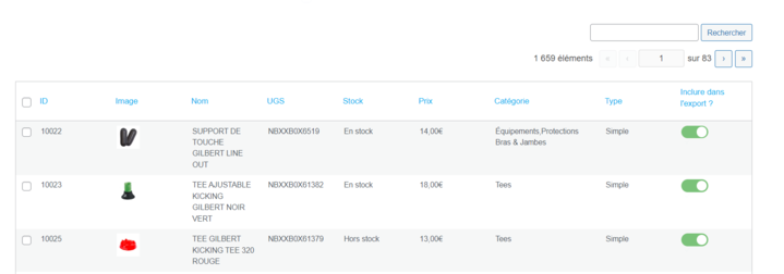 Aquí encontrarás tus productos activos de WooCommerce. Si eliminas o añades un producto, esto afectará el número de productos exportados.