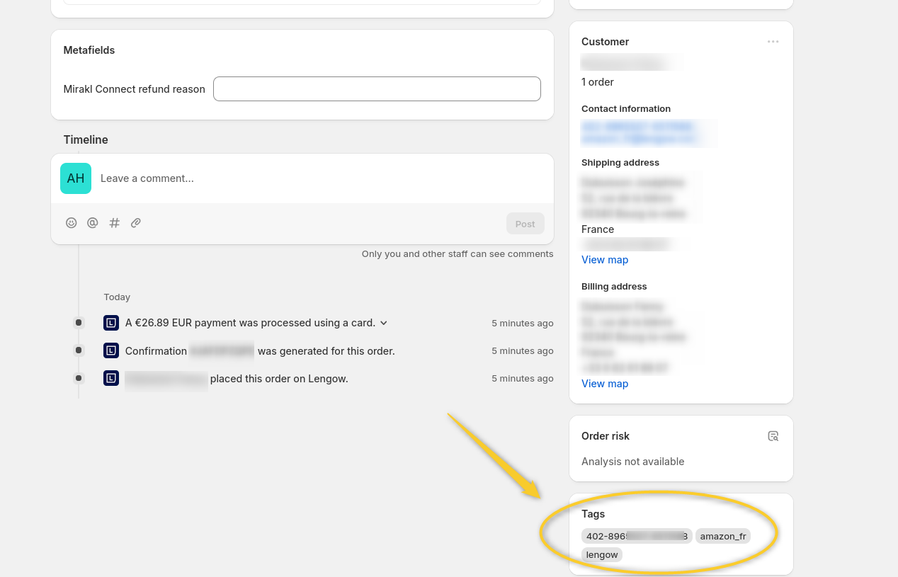 - Los pedidos se sincronizan luego con tu back office de Shopify en unos minutos después de aparecer en Lengow.