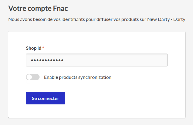 - Si tienes un canal Fnac FR y un canal Darty: Habilita la sincronización de productos en un solo canal (canal Darty por defecto para los feeds existentes).