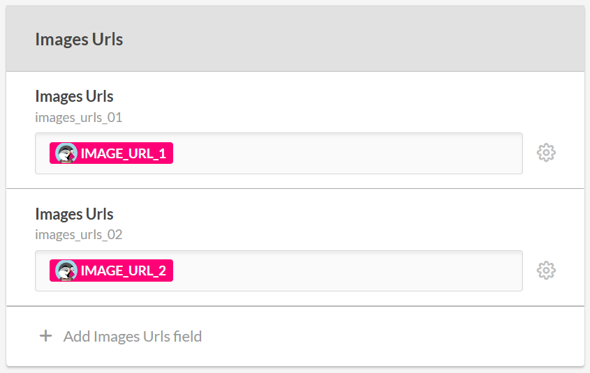 Puedes proporcionar hasta 8 imágenes por producto. Introduce las URL de las imágenes por separado en cada atributo "Images Urls" (haz clic en "Añadir campo de URLs de imágenes" para añadir otro atributo de imagen si es necesario):