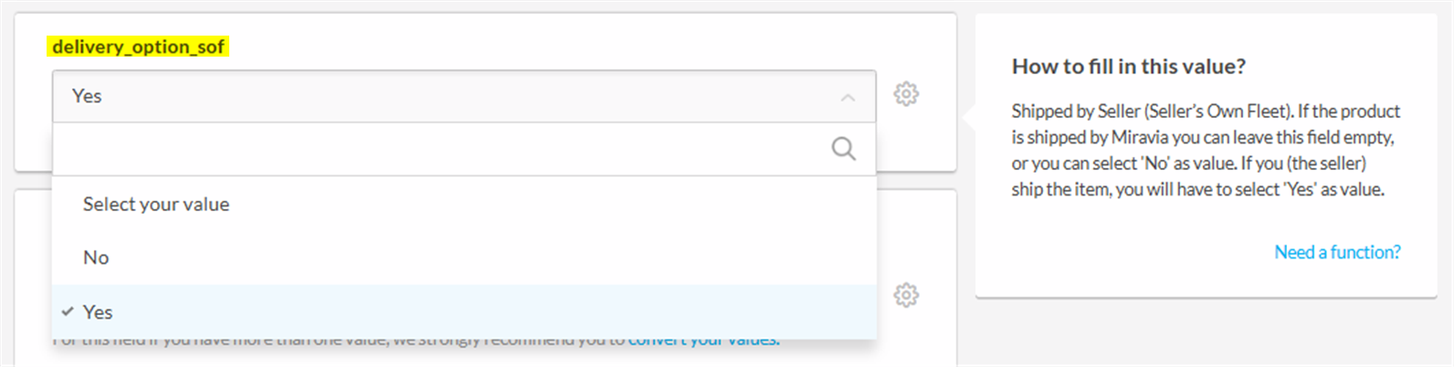 - Si el vendedor maneja la entrega (DBS), selecciona el valor "Sí".