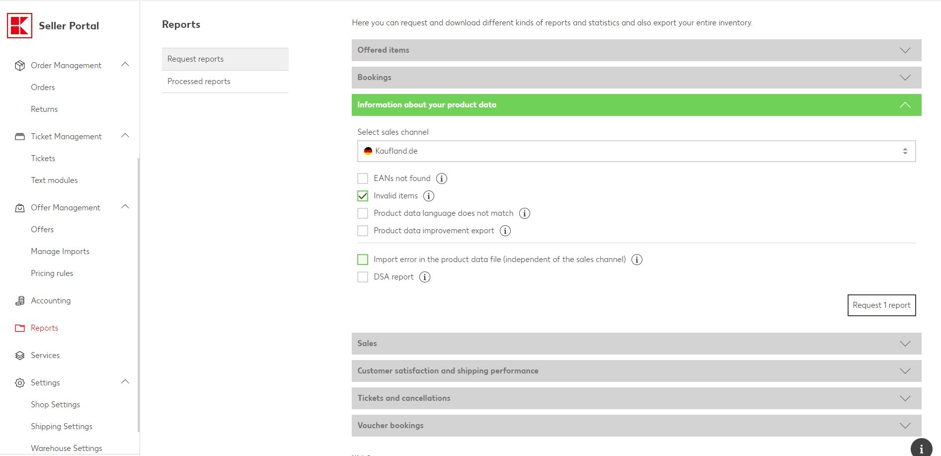 Producto y oferta informes de canal generados por Kaufland no están disponibles en Lengow.