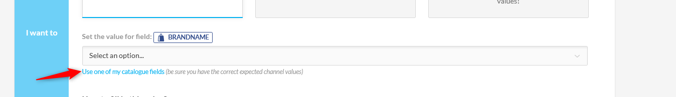 - Selecciona el campo de tu catálogo cuyos valores deben modificarse