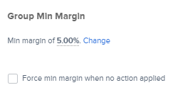 Margen Mínimo del Grupo Lo siguiente que debes hacer es especificar el Margen mínimo que quieres aplicar para las acciones creadas. Puedes establecer dichos márgenes utilizando un % o una cantidad dada (£/tipo de moneda).