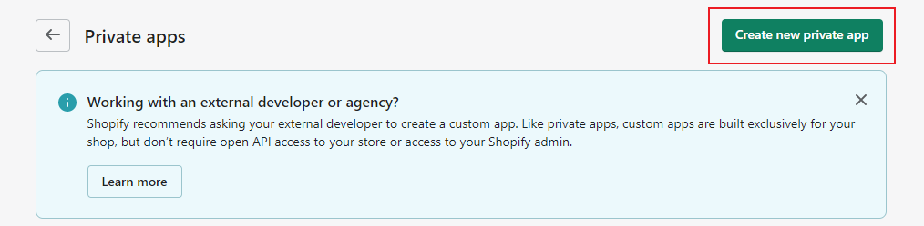 4. Haz clic en Crear nueva aplicación privada.