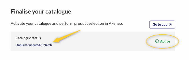 Incluso si haces clic en “¿Estado no actualizado? Actualizar”, no se activará hasta que lo actives desde Akeneo.