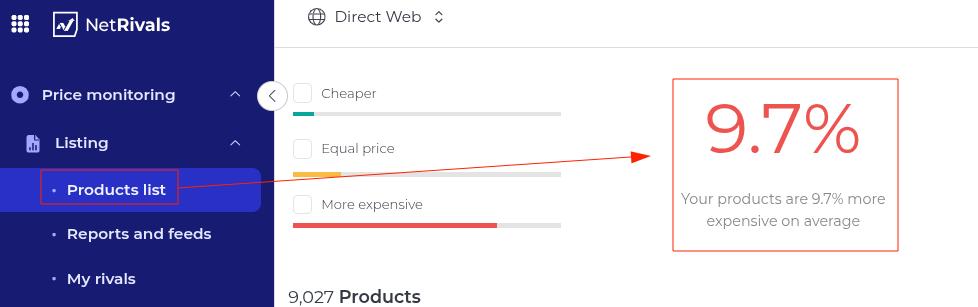 Este número se calcula como el promedio de todas las diferencias porcentuales individuales de los productos entre los precios de su tienda y los precios mínimos de los competidores.