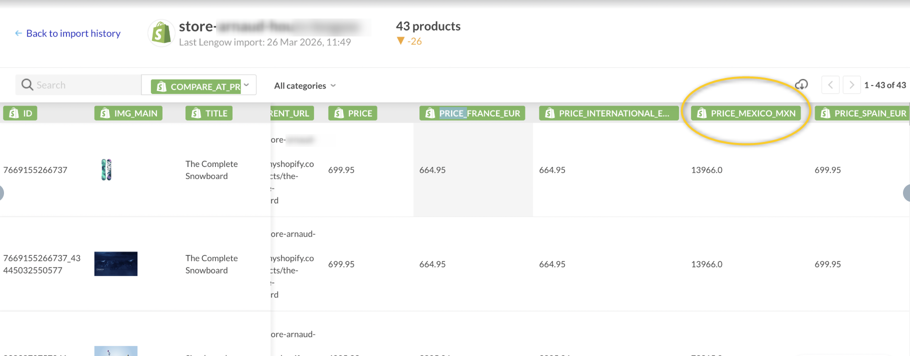 Cuando se habilita Shopify Markets y se actualizan los permisos, Lengow genera convenciones de nomenclatura específicas para los atributos localizados.