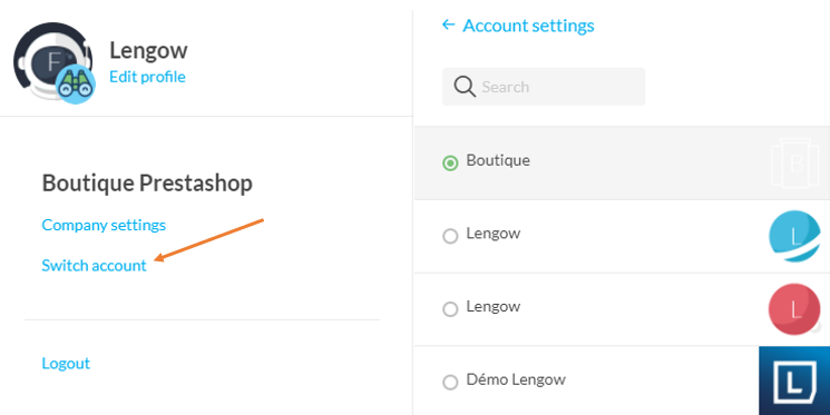 Cuando un usuario gestiona diferentes cuentas, puede cambiar de cuenta con un solo clic. El nombre de usuario y la contraseña permanecen iguales y no es necesario introducirlos cada vez que el usuario cambia de cuenta.
