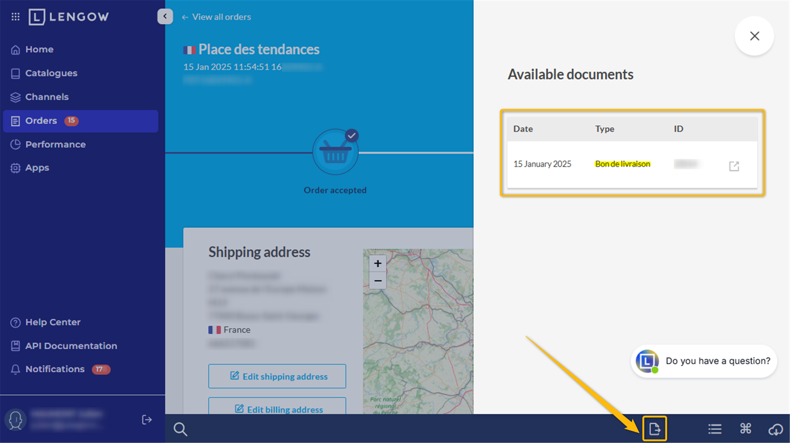 Ce document est mis à disposition dans Lengow dans le détail de la commande :