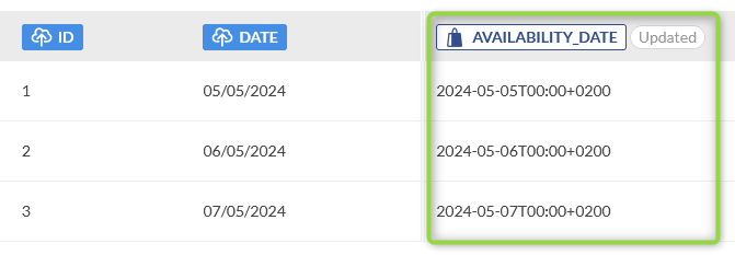 En faisant cela, vous conservez le champ du catalogue "DATE" avec le séparateur "/", et créez un nouveau champ "NEW_DATE" avec le nouveau format.
