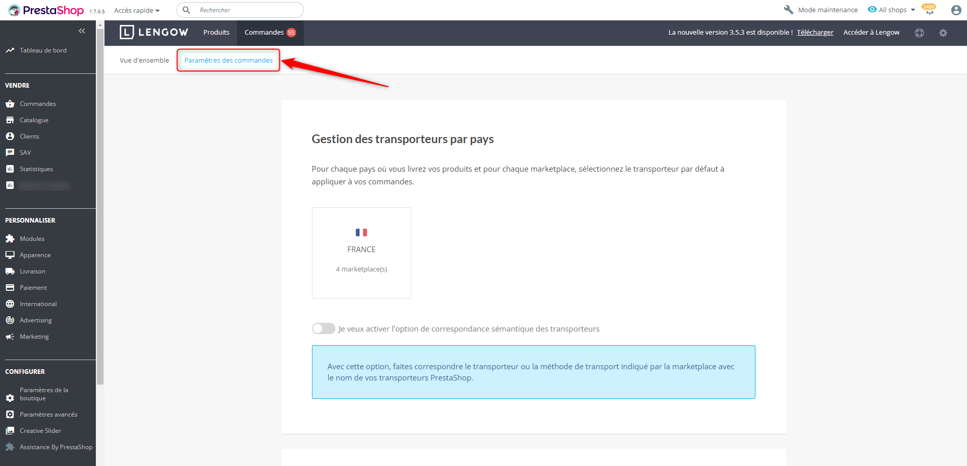 - Dans les paramètres du plugin Lengow, allez dans les "Paramètres d'importation".